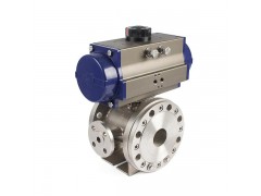气动V型调节球阀,其流道通畅,流量系数大,可调范围大,密封性能好。其带V型切